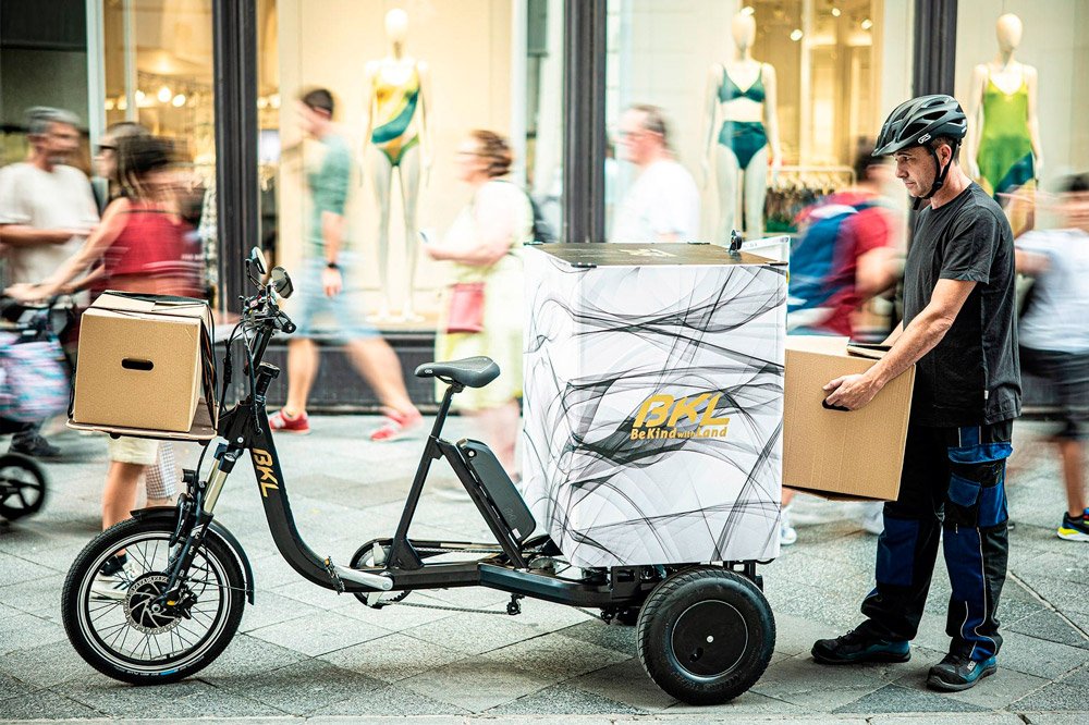 El triciclo eléctrico de carga BKL Box 450 Compact es el modelo más demandado por las empresas de transporte urgente. Con una caja de 450 litros, permite realizar repartos rápidos y eficientes incluso en zonas de difícil acceso. Ideal para moverse por la ciudad sin preocupaciones, evita multas de aparcamiento y ofrece un coste energético extremadamente bajo, inferior a 0,1 €/100 km. Perfecto para un reparto urbano ágil, económico y sostenible.